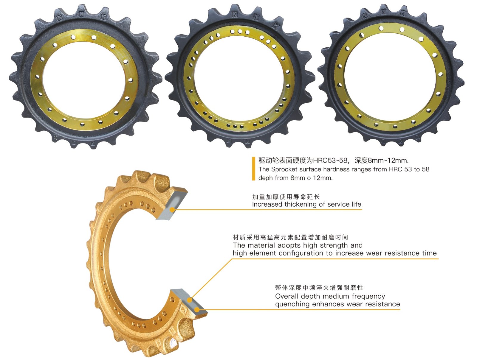 The Sprocket is a critical power transmission component in excavators, tasked with conveying power to the machine’s body and propelling the crawler.